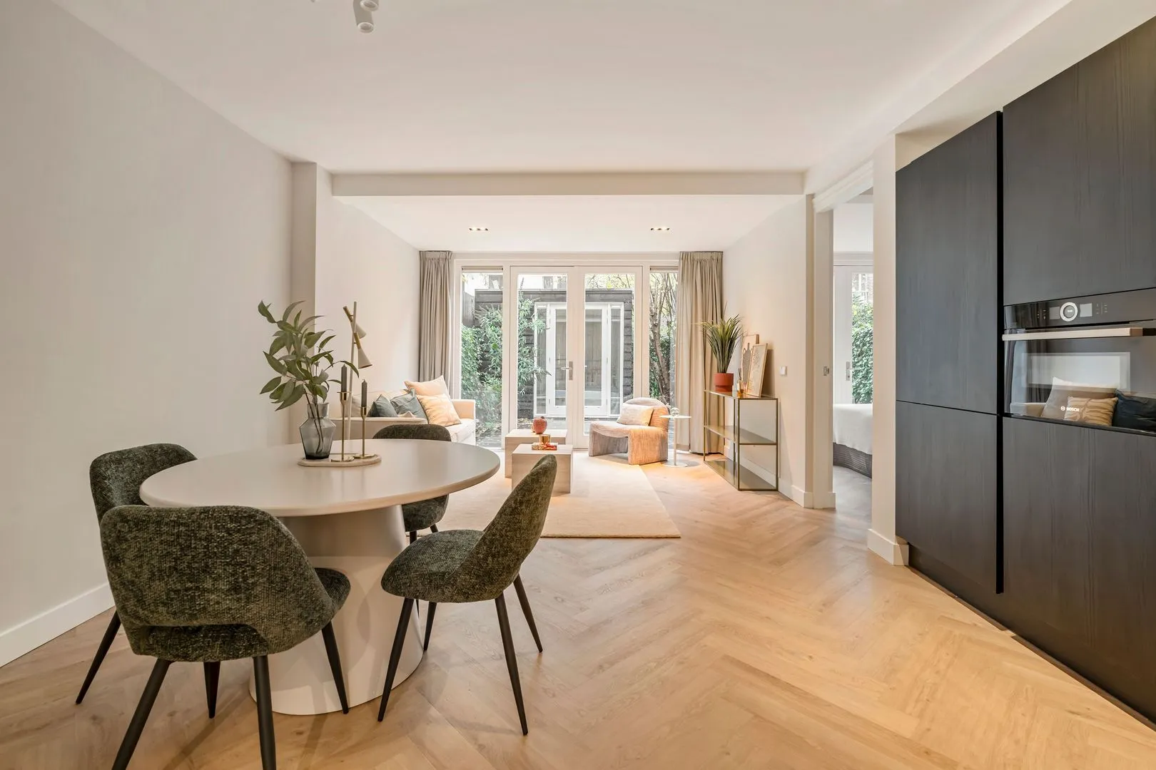 Living with the comfort of new and the charm of old Amsterdam, this stylish apartment offers it all. The property has been completely renovated, has a generous width of approximately 7 meters and features three well-sized bedrooms, a sunny south-facing garden and a separate garden house with bathroom, ideal as a workspace, guest room or hobby room; this provides four sleeping accommodations!