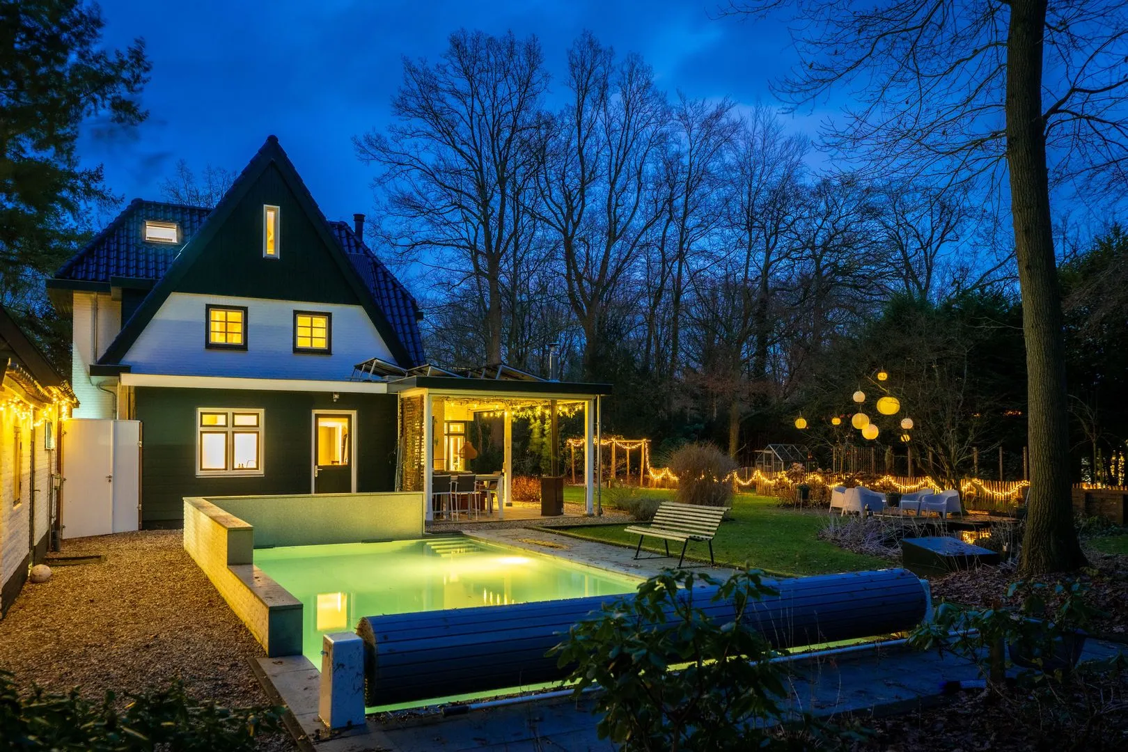 Dankzij de praktische indeling met zeer fraaie zichtlijnen richting de gezellige en prachtige (bos)tuin, met veel privacy vanwege zijn besloten ligging, biedt de woning een perfecte balans tussen wooncomfort, ruimte, licht én natuur. Kom thuis in de perfecte ambiance van deze prachtige, sfeervolle villa in het groen (met vrijstaande garage, berging én zwembad) en ervaar het ultieme gevoel van vrijheid – een uniek familiehuis met karakter en authentieke details! Door het gebruik van hoogwaardige materialen kent deze villa een kwalitatief hoogstaande en luxueuze afwerking. Het royale verwarmde zwembad maakt dit plaatje, samen met de twee overdekte terrassen die tegen de villa liggen, compleet.