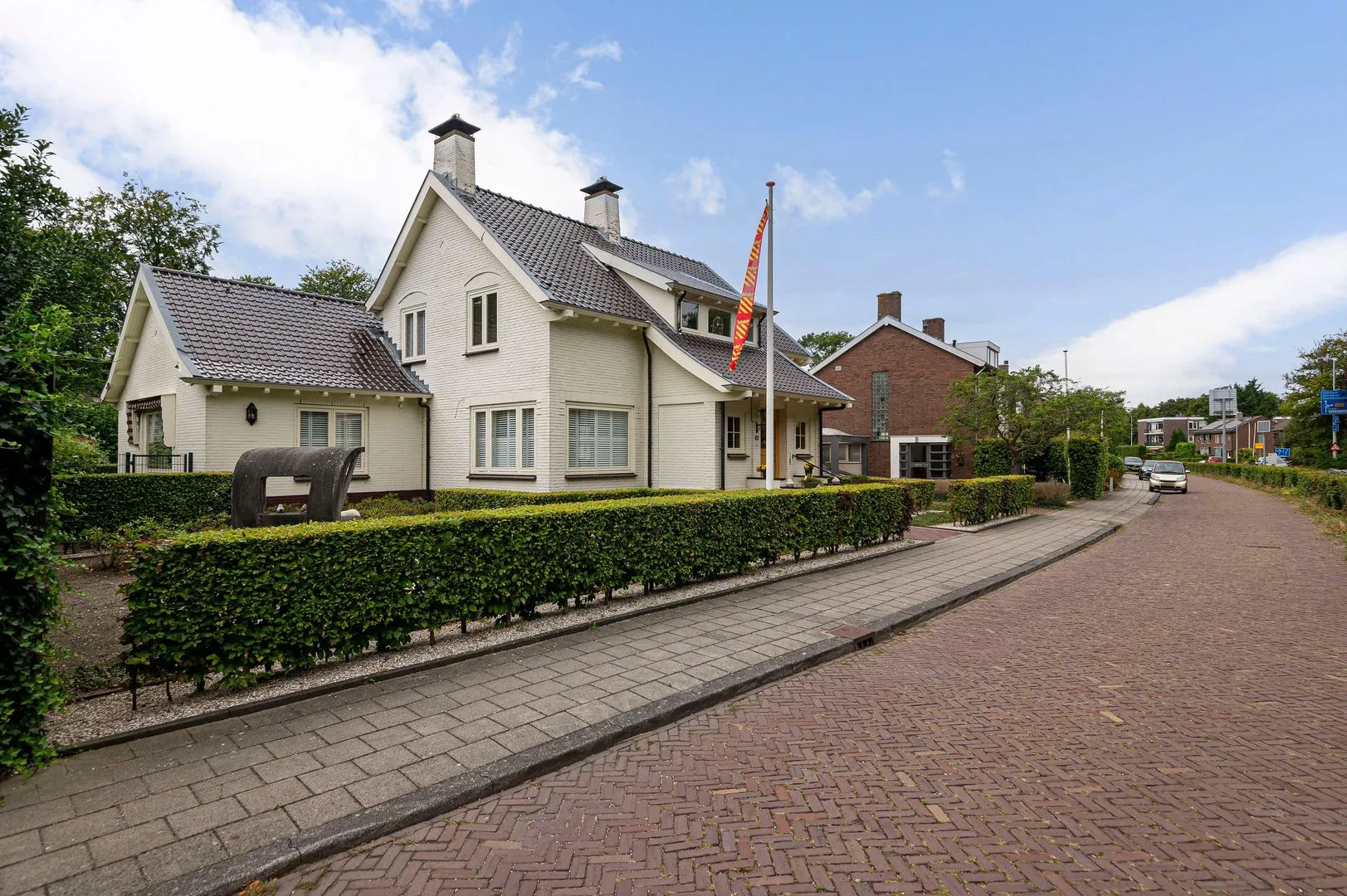 Upon arrival, you immediately notice the generous driveway, which can accommodate several cars. In addition, the villa features a spacious garage, perfect for parking your vehicles and additional storage space. The plot extends to the lane behind, the Willem Warnaarlaan, where you will also find a convenient second driveway with garage. As a result, you will always have plenty of parking and access options.