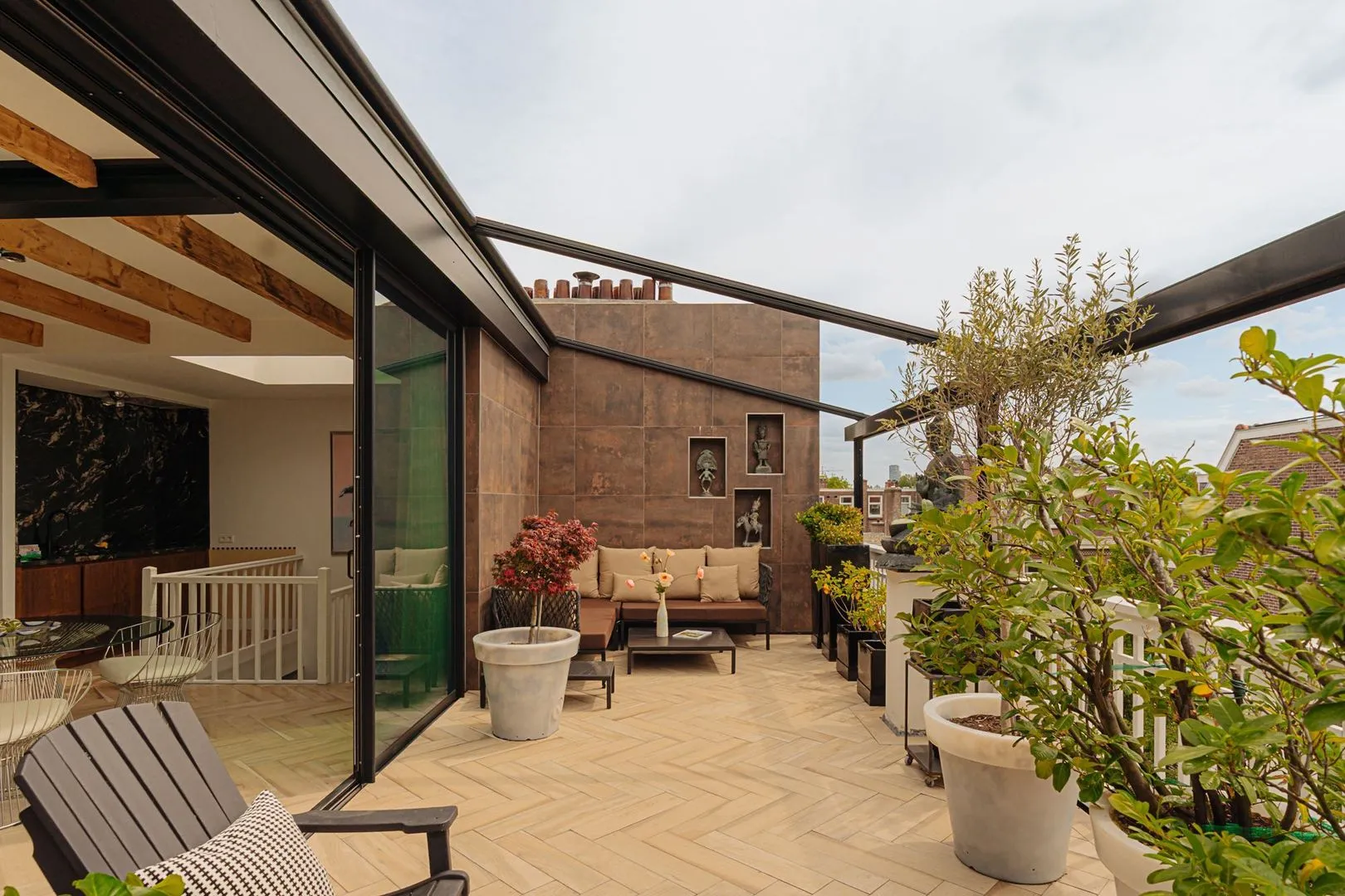 • Uniek dakterras (32 m²) en balkon;