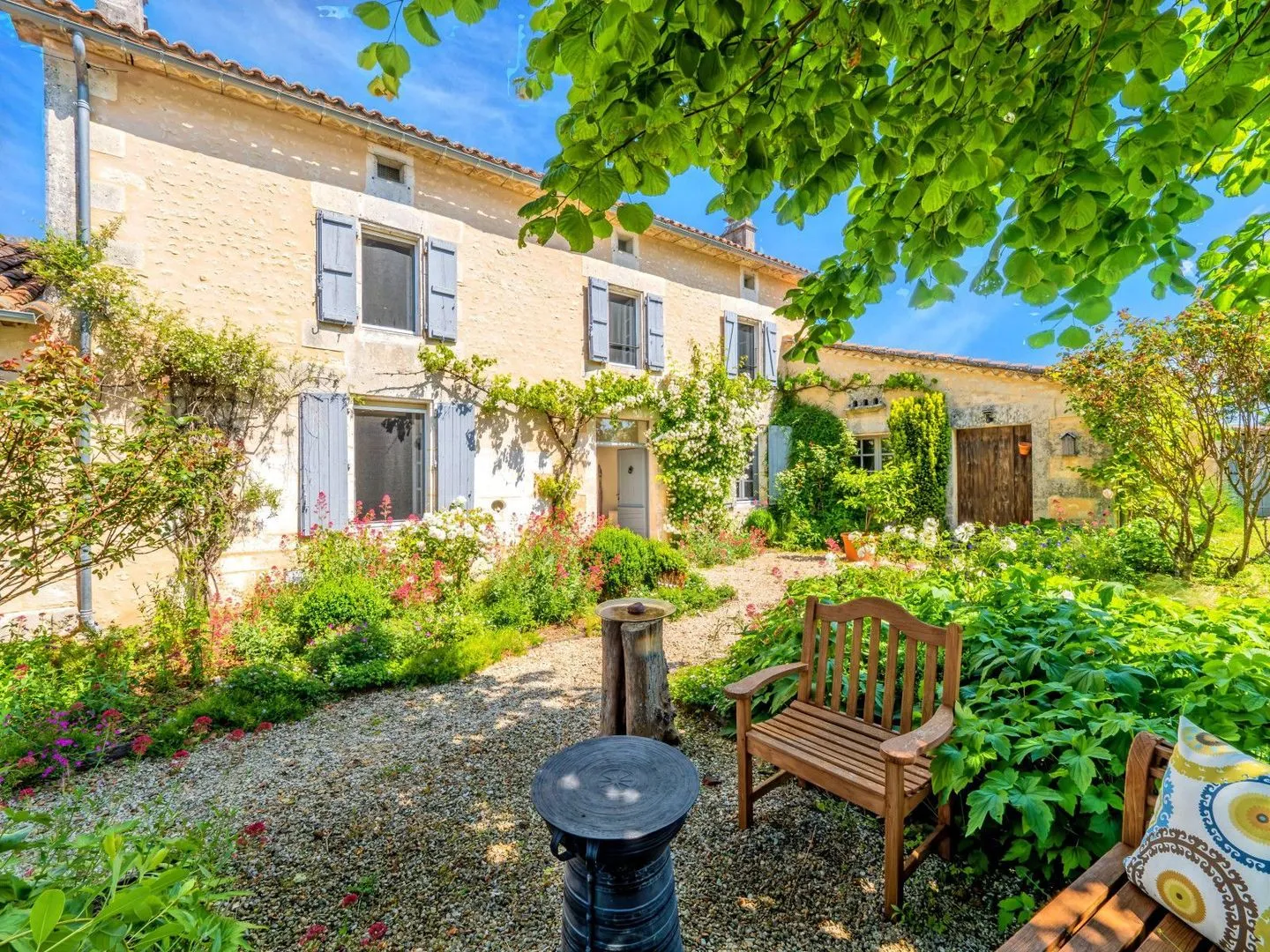 The exterior offers a pretty totally renovated gite of 100 m² . Bespoke fitted kitchen, living area with an open fireplace. Beautiful ensuite bedroom . Outside covered terrace and a view across the village of Ronsenac, Chateau de la Mercerie, Magnac Lavalette and Villebois Lavalette.
