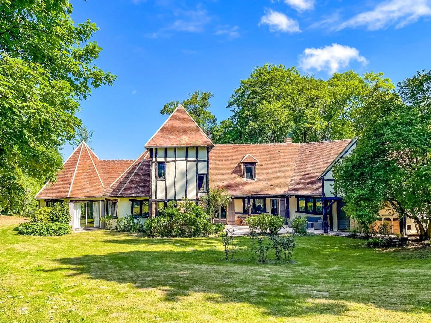 This remarkable character residence in Chauvry showcases magnificent Norman half-timbering and distinctive French architectural heritage, perfectly situated just 30 minutes from Paris in the verdant Val-d'Oise department.