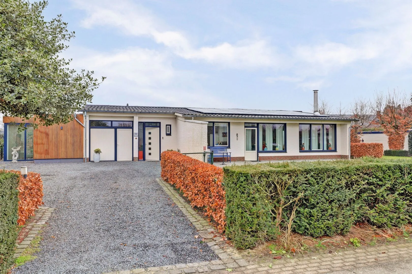 Via de ruime hal kom je deze bungalow prettig en ruimtelijk binnen. De woonkamer is lekker royaal en de aangebouwde tuinkamer/serre is een mooie toevoeging en biedt extra leefruimte en licht. Er is mooi uitzicht over het eigen perceel en de groenvoorziening. De houtgestookte haard zorgt voor sfeer en aangename warmte en de airco in de tuinkamer zorgt voor koeling en bijverwarming. De gesloten keuken is voorzien van een uitgebreide inbouwcombinatie met apparatuur en met een natuurstenen aanrechtblad. De keuken heeft ook vrij uitzicht op de voortuin en de groenvoorziening. Via de hal bereik je de garage berging, hier is veel bergruimte aanwezig en ook de HR Cv-ketel (2006) is hier geplaatst. In deze ruimte is ook een uitstortgootsteen geplaatst, altijd handig. Er zijn 3 slaapkamers. De master bedroom is uitgerust met een airco. De luxe badkamer is voorzien van een inloopdouche, ligbad, wastafel en een toilet. In de badkamer ligt comfortabele vloerverwarming. Om volledig tot rust te komen kun je terecht in de eigen wellness en relax ruimte. Deze ruimte is in 2022 gerealiseerd en voorzien van 2 sauna’s, douche en toiletruimte. Uiteraard is de wellness voorzien van vloerverwarming.