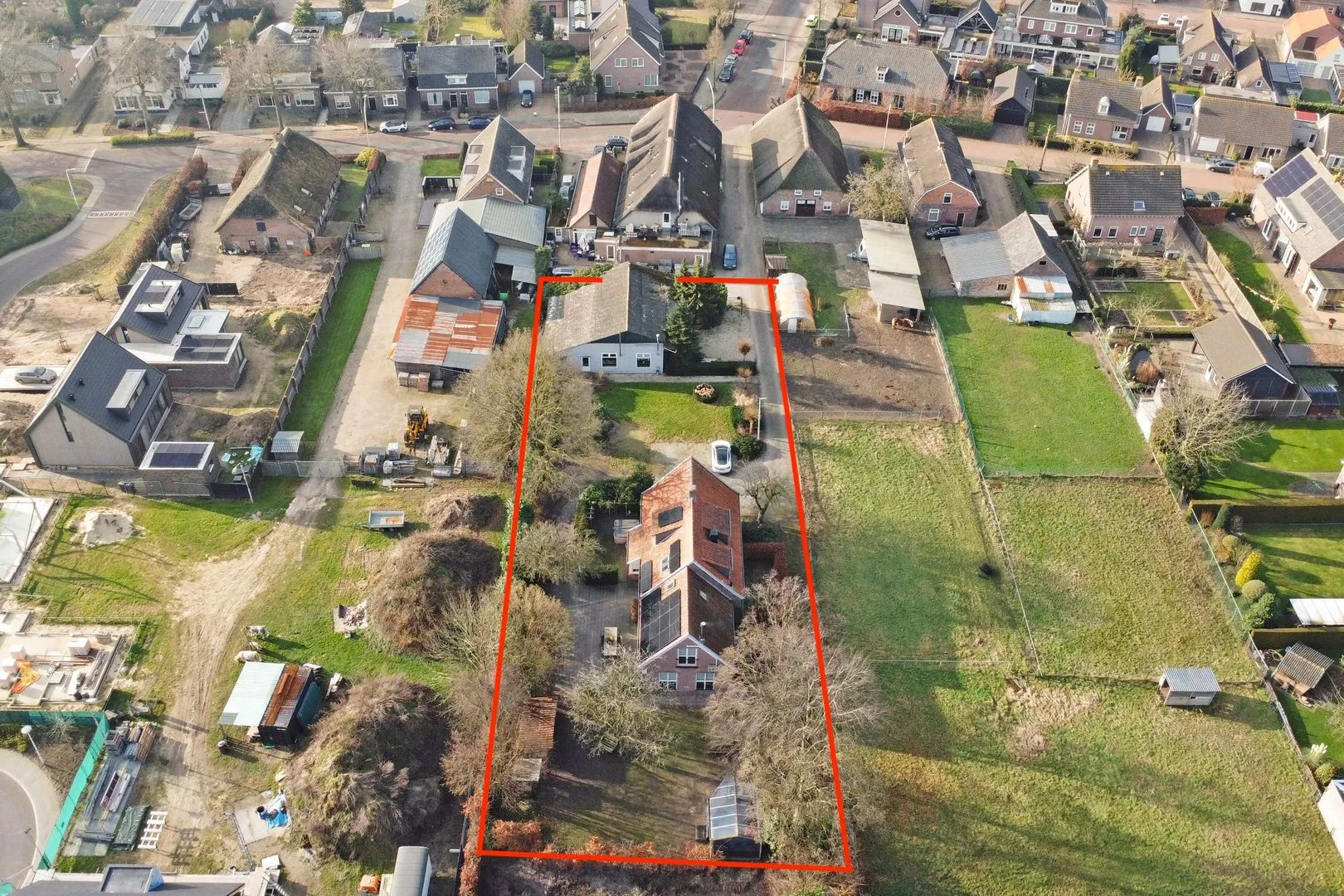 Het geheel bestaat uit twee afzonderlijke objecten: een woonhuis met de bestemming ‘wonen’ met 236 m2 woonoppervlakte en bruto inhoud van 905 m3 op een perceel van 1.296 m2 en het bijgebouw met de bestemming ‘gemengd’ met 155 m2 vloeroppervlakte 611 m3 op een perceel van 721 m². Beide percelen zijn achter voorliggende bebouwing gesitueerd (tweedelijns bebouwing), wat zorgt voor een gevoel van vrijheid en optimale privacy. De woning is bereikbaar via een lange oprit, die langs een restaurant voert en uitkomt op het eigen terrein. Deze situering maakt de ligging bijzonder rustig en beschut.