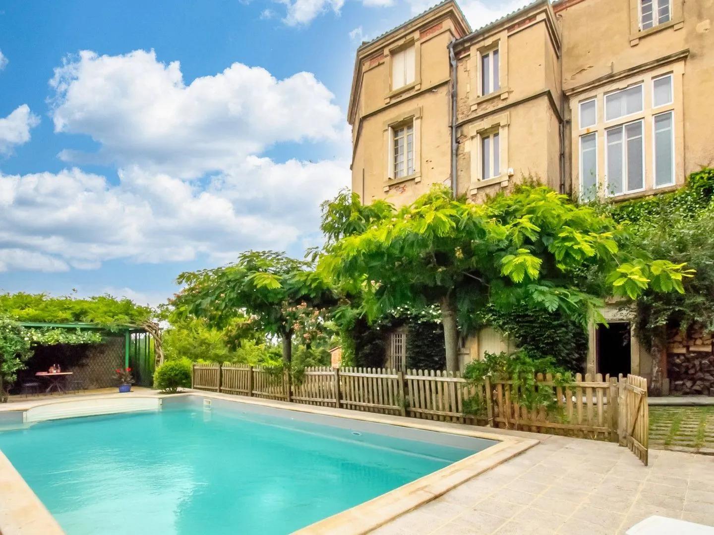 Beyond the pool is the garage which has spaces for at least four or five vehicles as well as a wood store and a workshop. From this level you can access the maison du gardien above.