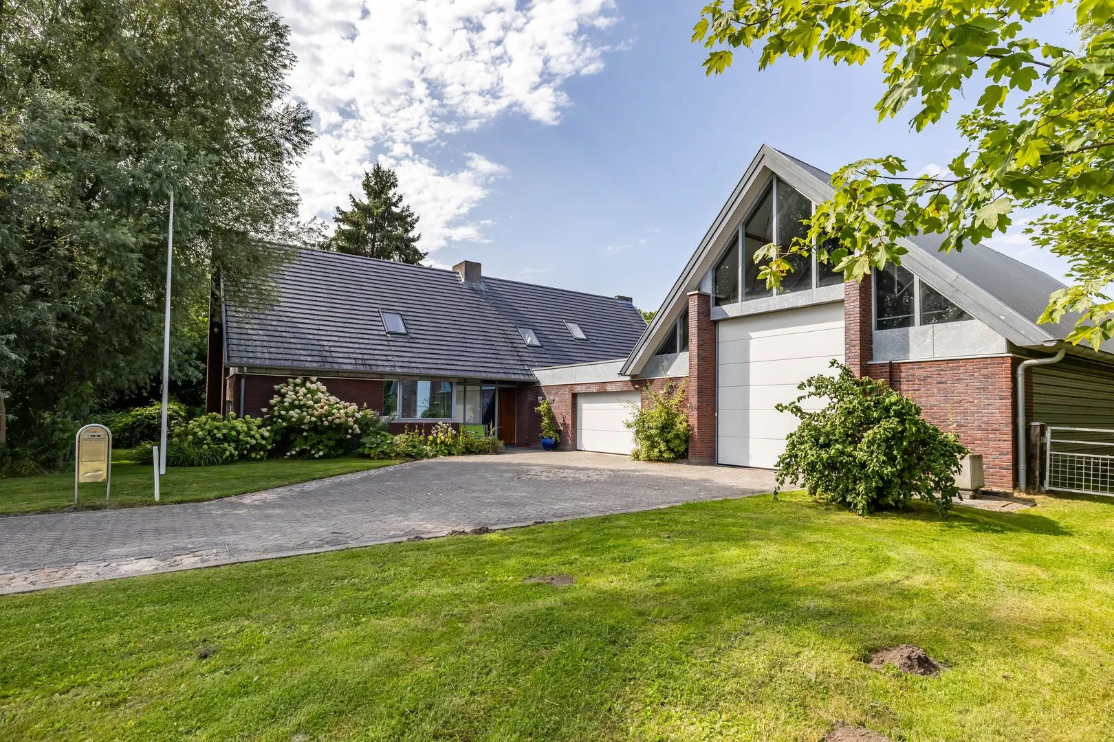 Het onder moderne architectuur gebouwde huis is in 2011 gerealiseerd en beschikt over een woonoppervlak van 268 m2. De aangebouwde schuur/loods geeft zowel op de voor- als achterzijde hoge deuren, deze ruimte is 178 m2 groot en kan daarmee voor vele doeleinden worden gebruikt.