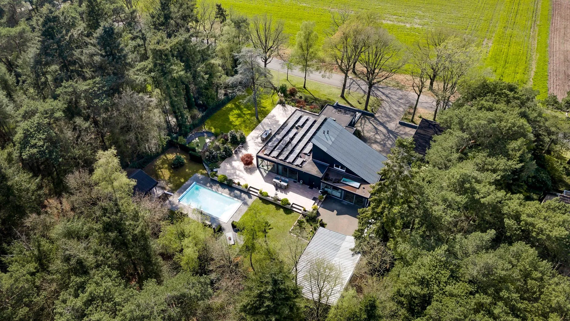De parkachtige tuin sluit naadloos aan op het bos van Landgoed Kamersven. De achtertuin biedt veel rust en privacy aangezien er geen directe achterburen zijn. Het schitterende zwembad is goed onderhouden en beschikt over een warmtepomp. Achter de woning ligt een grote schuur, plaatsbiedend voor 1 a 2 auto's met aansluitend een grote overkapping. Het vrijstaande poolhouse is in gebruik als wellnessruimte en voorziet in een keukenblok, sauna en doucheruimte.
