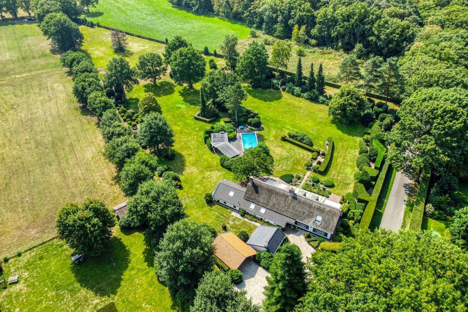 De volgende verbluffende kwaliteit van dit perceel van bijna 1,6 hectare is de werkelijk immense uitgestrektheid van de tuin. Hiermee verdient deze woonlocatie absoluut de eretitel ‘uniek’, ook in deze bijzondere en gewilde villawijk van Oss. De ongekende afmetingen van dit buiten bieden heel veel mogelijkheden om te ontspannen of juist voor inspanning. Op beide gebieden levert het eigen zwembad een zeer aangename bijdrage. Daarbij zorgen de hoge hagen - uiteraard samen met de zeer uitzonderlijke locatie - voor een maximum aan rust, privacy en vrijheid.