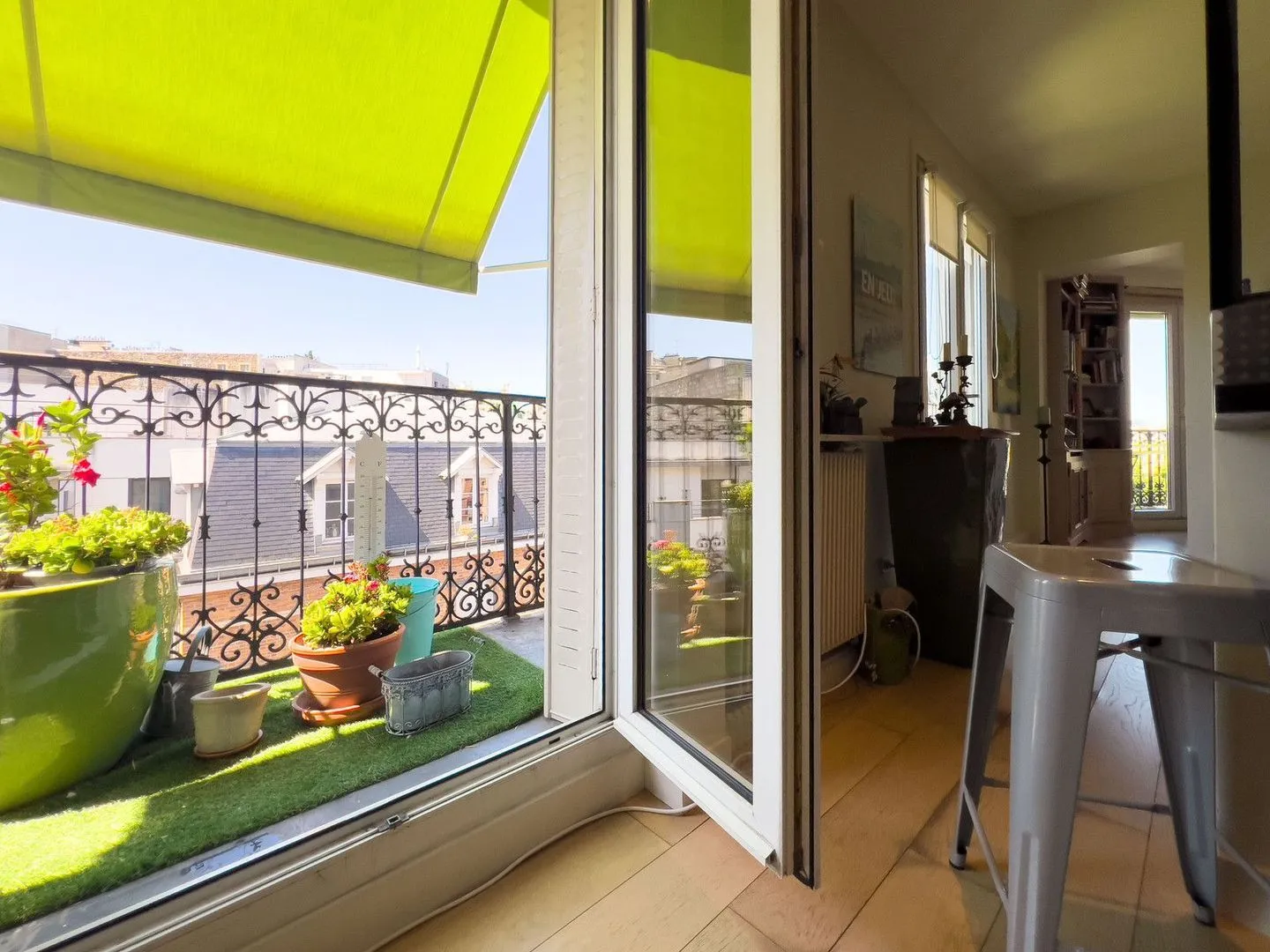 Features : Building built on a human scale and ideally located, triple exposure corner property bathed in light, beautiful unobstructed views, duplex with spiral staircase, well maintained over the years and ready to move in after a refreshing of the paintwork, latest paintwork and new kitchen completed in 2013, very friendly neighbourhood with no incivility, lift on split level floor, louvered shutters and blinds on all windows, sunny with large bay windows opening onto a balcony, offers comfort and peace and quiet due to the double glazing, main facing south-west and north-west, 200m from Place Victor Hugo, semi-independent, fully-equipped kitchen, flexible and possibility of creating a 3rd bedroom, 2.65m high ceilings, numerous made-to-measure cupboards and storage space with integrated sliding doors, 5th and 6th floors (top floors), two flats on this floor, secure building (caretaker, electronic key Vigic + Interphone/digicode, armoured door), fibre optic broadband, individual gas heating system, freehold and no building renovation voted or planned,, common areas refurbished in 2013, service charges €426/month including maintenance of common areas by the building caretaker + cold water + lift, property tax €2750/year, suitable for self-employed professionals with no noise pollution.