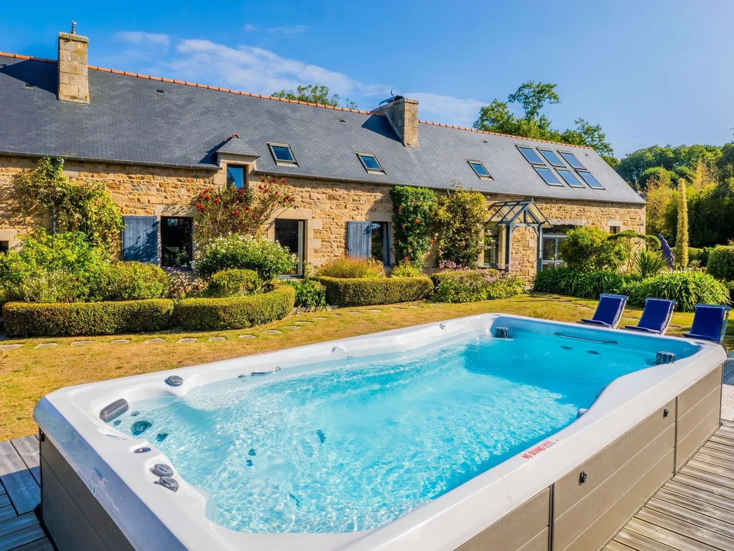 Outdoor swimming spa, with views over the gardens