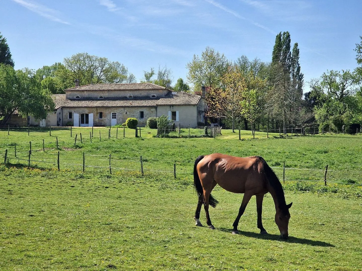 The main house offers adjoining reception rooms with southern exposure. In the living room, dining room, and entrance hall, you'll find exposed stone walls and Gironde tiles. The renovated 28m² kitchen has a dual south and west exposure and an open fireplace. Adjoining the kitchen, in the small living room, you'll be captivated by the view. A large 23m² office has an unobstructed view of the horses at the rear of the Girondine. A bedroom, utility room, workshop, and boiler room complete the ground floor of the main house. Upstairs, the 30m² master suite has a beautiful exposed trusses and a shower room with a bathtub and separate toilet. A 20m² bedroom has its own shower room. The third 10m² bedroom is next to a bathroom and separate toilet.