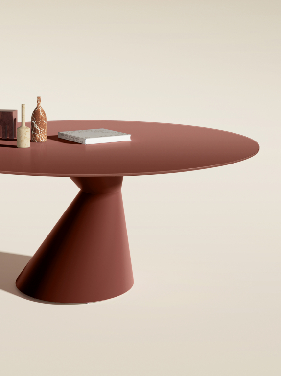 Chapeau is een opvallende tafel met een dynamisch design. Het ontwerp van Monica Armani voor Lago is er met een ovaal of rond blad. Blikvanger is natuurlijk het karakteristieke onderstel dat vanuit elk perspectief weer helemaal anders oogt. Een uitgekiende techniek maakt de balans mogelijk.